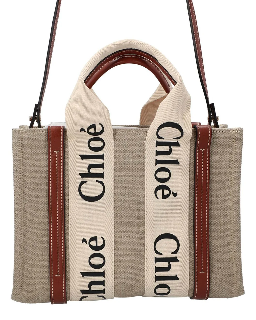 - About the brand: Romantic, cool, and glamorous. - This is an authentic, pre-loved piece. This item has never been carried. This item shows out of store condition. include tags, box and dust bag.. - For more information on condition, please see our condition guide at the bottom - Small Woody Tote in brown Linen - Measurements: 10.43in long x 3.149in wide x 7.874in high; 4.33in handle - Please note: All measurements were taken by hand and are approximate; slight variations may occur. - The Pre-Loved Condition Guide - Our products are 100% genuine. In some cases we purchase merchandise from trusted independent suppliers and not directly from the brand owner. In all cases we stand by the authenticity of every product sold on our site.