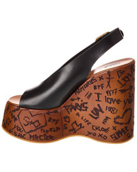 Maxime leather slingback platform wedge sandals Black