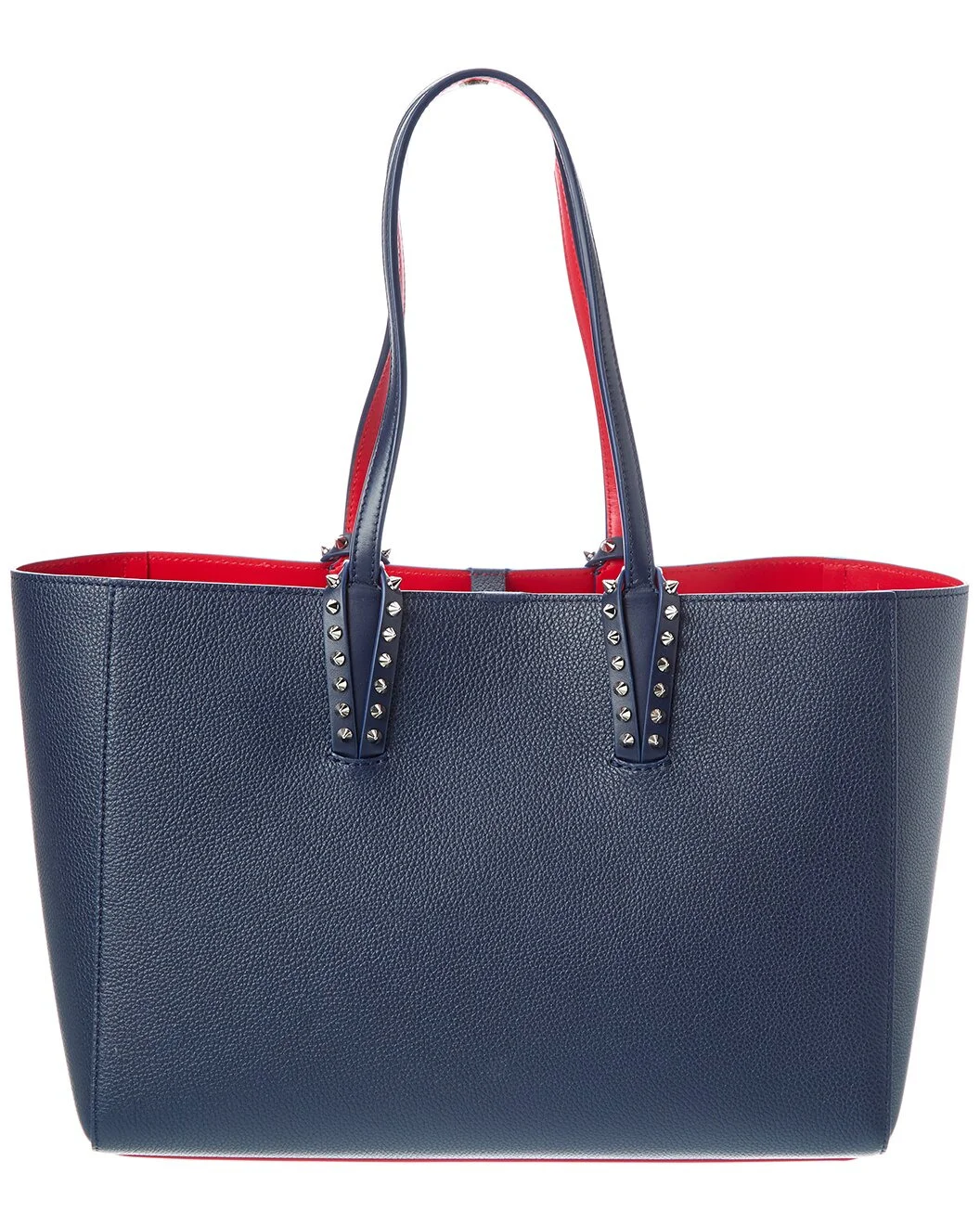 - About the brand: Christian Louboutin. Elegance, technical proficiency, and that signature red sole. - Made in Italy - Cabata Small Leather Tote in navy leather and silver-tone hardware with removable zipper pouch - Interior design details: signature red leather lining - Measures 16.5in wide x 9.75in high x 5.75in deep - Top handles drop 9in - Open top - Please note: All measurements were taken by hand and are approximate; slight variations may occur. - Our products are 100% genuine. In some cases we purchase merchandise from trusted independent suppliers and not directly from the brand owner. In all cases we stand by the authenticity of every product sold on our site.
