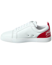 - About the brand: Christian Louboutin. Elegance, technical proficiency, and that signature red sole. - Please note: Size selections are European. For US conversions, please reference size chart. - Based on feedback from Members, this brand typically runs small and narrow. We suggest sizing up a half to full size for most styles. Sizing up won't increase the width of the toe box, however. - Made in Italy - Fun Louis Junior Leather Sneaker in white/red leather with logo back - Lace-up closure - Lightly padded leather insole - Rubber sole with traction - Our products are 100% genuine. In some cases we purchase merchandise from trusted independent suppliers and not directly from the brand owner. In all cases we stand by the authenticity of every product sold on our site.