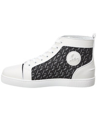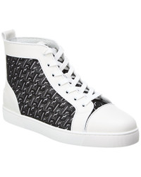 - About the brand: Christian Louboutin. Elegance, technical proficiency, and that signature red sole. - Based on feedback from Members, this brand typically runs small and narrow. We suggest sizing up a half to full size for most styles. Sizing up won't increase the width of the toe box, however. - Made in Italy - Louis Coated Canvas & Leather High-Top Sneaker in white leather and black logo coated canvas with logo patch - Lace-up closure - Lightly padded leather insole - Rubber sole with traction - Our products are 100% genuine. In some cases we purchase merchandise from trusted independent suppliers and not directly from the brand owner. In all cases we stand by the authenticity of every product sold on our site.