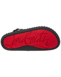 - About the brand: Christian Louboutin. Elegance, technical proficiency, and that signature red sole. - Please note: Size selections are European. For US conversions, please reference size chart. - Based on feedback from Members, this brand typically runs small and narrow. We suggest sizing up a half to full size for most styles. Sizing up won't increase the width of the toe box, however. - Made in Spain - Pyrabizz Waxed Leather Sandal in black waxed leather and gunmetal-tone hardware with stud embellishments - Adjustable ankle strap with buckle closure - Smooth leather insole - Rubber sole with traction - Our products are 100% genuine. In some cases we purchase merchandise from trusted independent suppliers and not directly from the brand owner. In all cases we stand by the authenticity of every product sold on our site.
