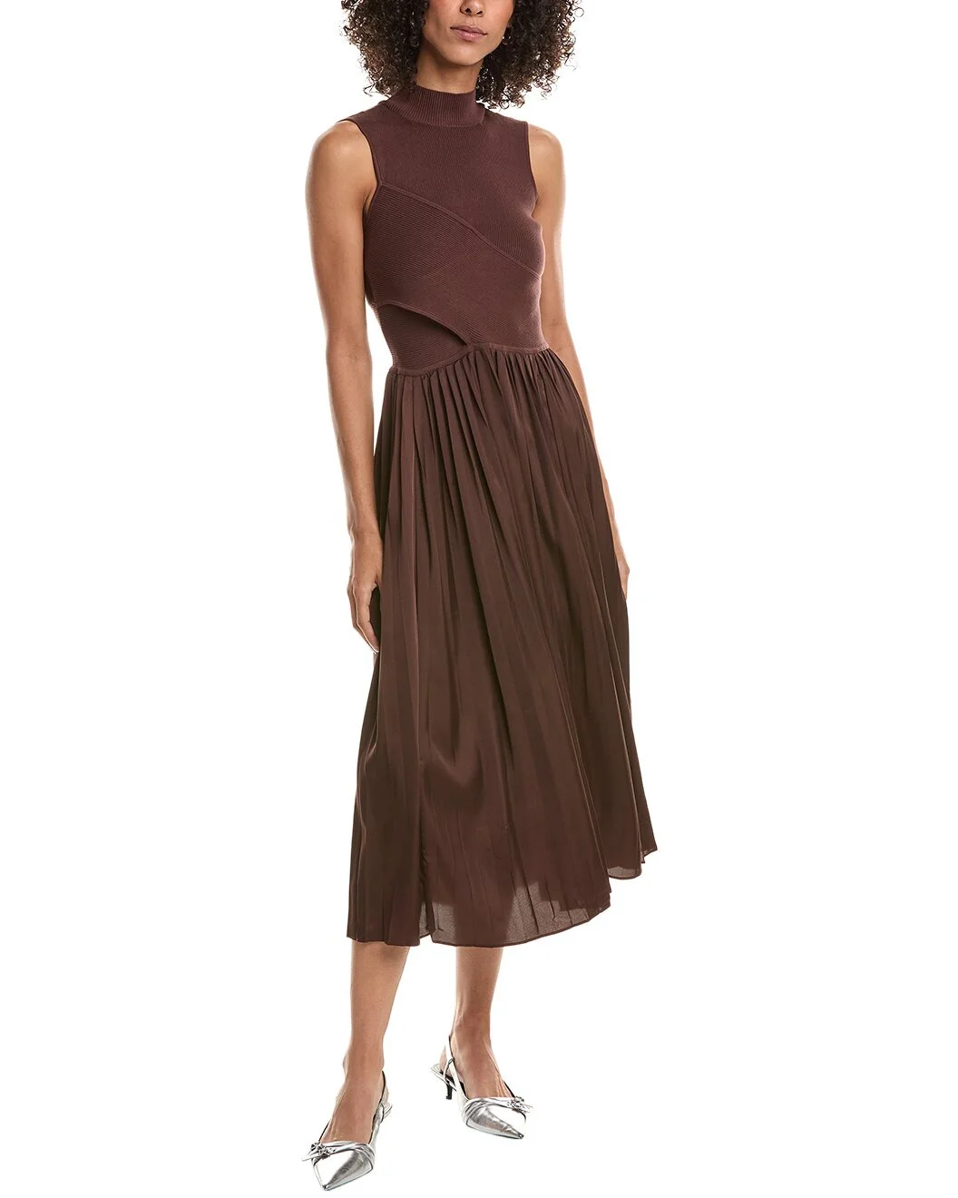 MAIZIE MOCK NECK SLEEVE PLEATED SWEATER DRESS