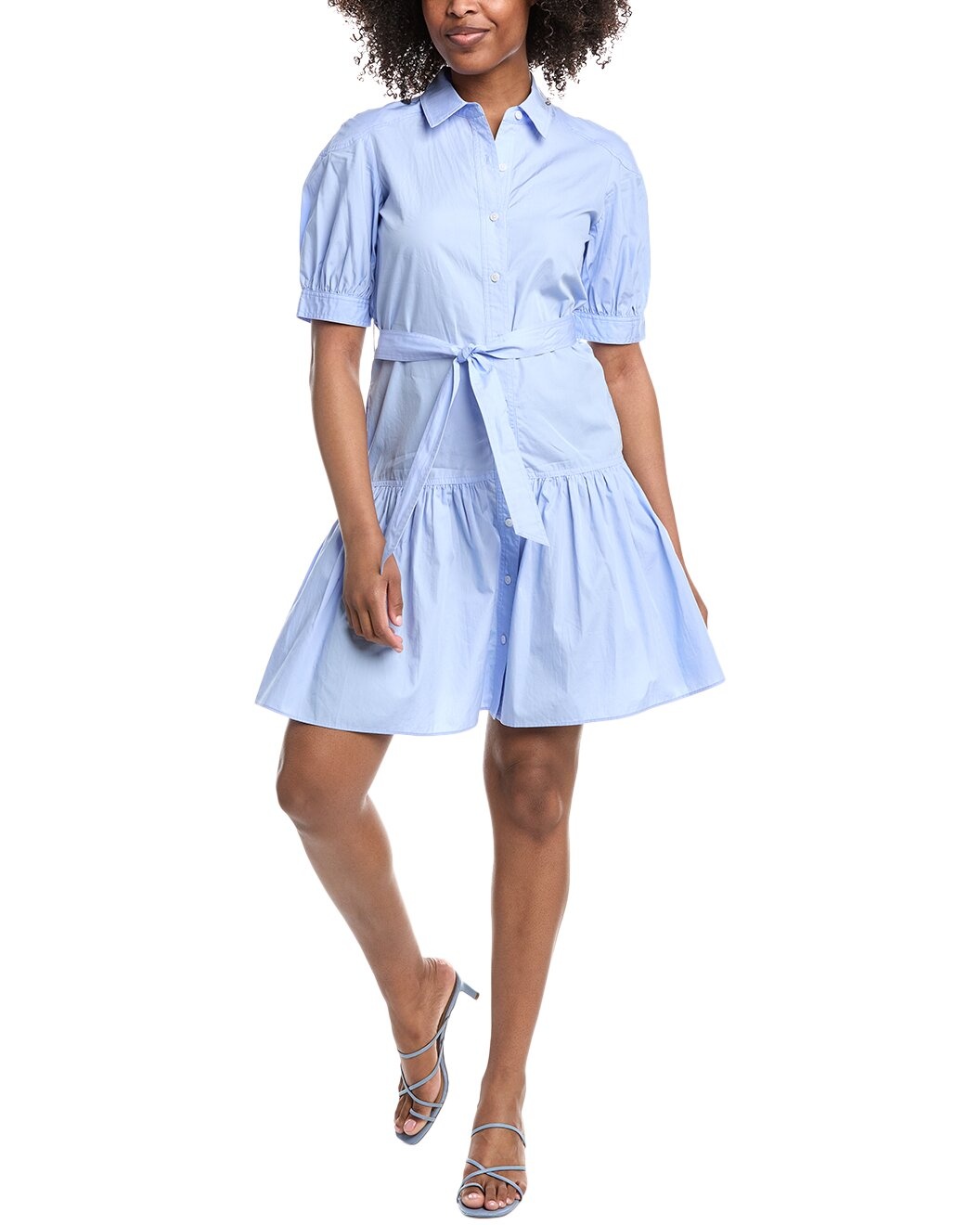 - About the brand: A relaxed, sensible approach to style with a touch of intelligence and unique charm. - Luma Shirtdress in powder blue with ruffle hem, side seam pockets, and tie sash - Approximately 36.5in from shoulder to hem - This item tends to run small (based on Member feedback). We recommend sizing up for your best fit. Model is 5'9 and is wearing a size 4. Measurements may vary slightly by size. - Button front - 100% cotton - Dry clean only - Imported
