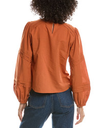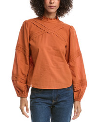 - About the brand: A relaxed, sensible approach to style with a touch of intelligence and unique charm. - Marlowe Long Sleeve Blouse in cinnamon with mock neck, balloon sleeves, elasticized cuffs, and pintuck details - Approximately 23.5in from shoulder to hem - This item tends to run small (based on Member feedback). We recommend sizing up for your best fit. Model is 5'10 and is wearing a size 4. Measurements may vary slightly by size. - Keyhole button closure - 95% Cotton, 5% Metallic Fibers - Dry clean only - Imported