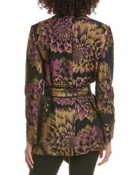 - About the brand: A relaxed, sensible approach to style with a touch of intelligence and unique charm. - Orville Smoking Jacket in black multicolor with shawl lapel, front pockets, and tie sash at waist - Approximately 28in from shoulder to hem - This item tends to run small (based on Member feedback). We recommend sizing up for your best fit. Model is 5'10 and is wearing a size 4. Measurements may vary slightly by size. - 46% Polyester, 36% Viscose, and 18% Cotton - Dry clean only - Imported