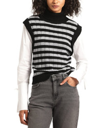 - About the brand: A relaxed, sensible approach to style with a touch of intelligence and unique charm. - Paola Mixed Media Turtleneck Sweater in black/white/grey - Approximately 21in from shoulder to hem - Measurements taken from a size 4 and may vary slightly by size. - Dry clean only - Imported