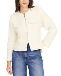 - About the brand: A relaxed, sensible approach to style with a touch of intelligence and unique charm. - Prewett Zip Front Wool-Blend Jacket in blanc de blanc - Approximately 21in from shoulder to hem - Design details: crewneck, flap pockets at chest, lined - Zipper front - 58% polyester, 24% acrylic, 13% wool, 5% nylon - 100% Polyester - Dry clean only - Imported