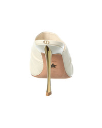 - About the brand: Elegant and timeless French luxury. - Please note: Size selections are European. For US conversions, please reference size chart. - Made in Italy - D-Fame Leather Sandal in white leather and gold-tone hardware with ruched design and logo accent - Lightly padded leather insole - Smooth leather sole - 4.5in heel - Please note: All measurements are approximate and were taken from a size 37; slight variations may occur. - Our products are 100% genuine. In some cases we purchase merchandise from trusted independent suppliers and not directly from the brand owner. In all cases we stand by the authenticity of every product sold on our site.