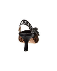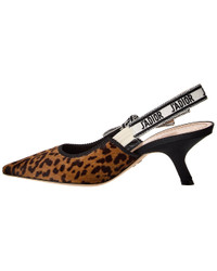 - About the brand: Elegant and timeless French luxury. - Please note: Size selections are European. For US conversions, please reference size chart. - Made in Italy - J'Adior Haircalf Slingback Pump in leopard haircalf with grosgrain heel and elastic logo-printed slingback strap - Lightly padded leather insole - Smooth leather sole - 2.75in heel - Please note: All measurements are approximate and were taken from a size 37; slight variations may occur. - Our products are 100% genuine. In some cases we purchase merchandise from trusted independent suppliers and not directly from the brand owner. In all cases we stand by the authenticity of every product sold on our site.