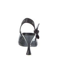 - About the brand: Elegant and timeless French luxury. - Please note: Size selections are European. For US conversions, please reference size chart. - Made in Italy - J'Adior Leather Slingback Pump in black leather with croc-embossed detail, and pointy-toe - Self-tie ankle wrap closure - Lightly padded leather insole - Smooth man-made sole - 3in heel - Please note: All measurements are approximate and were taken from a size 38; slight variations may occur. - Our products are 100% genuine. In some cases we purchase merchandise from trusted independent suppliers and not directly from the brand owner. In all cases we stand by the authenticity of every product sold on our site.