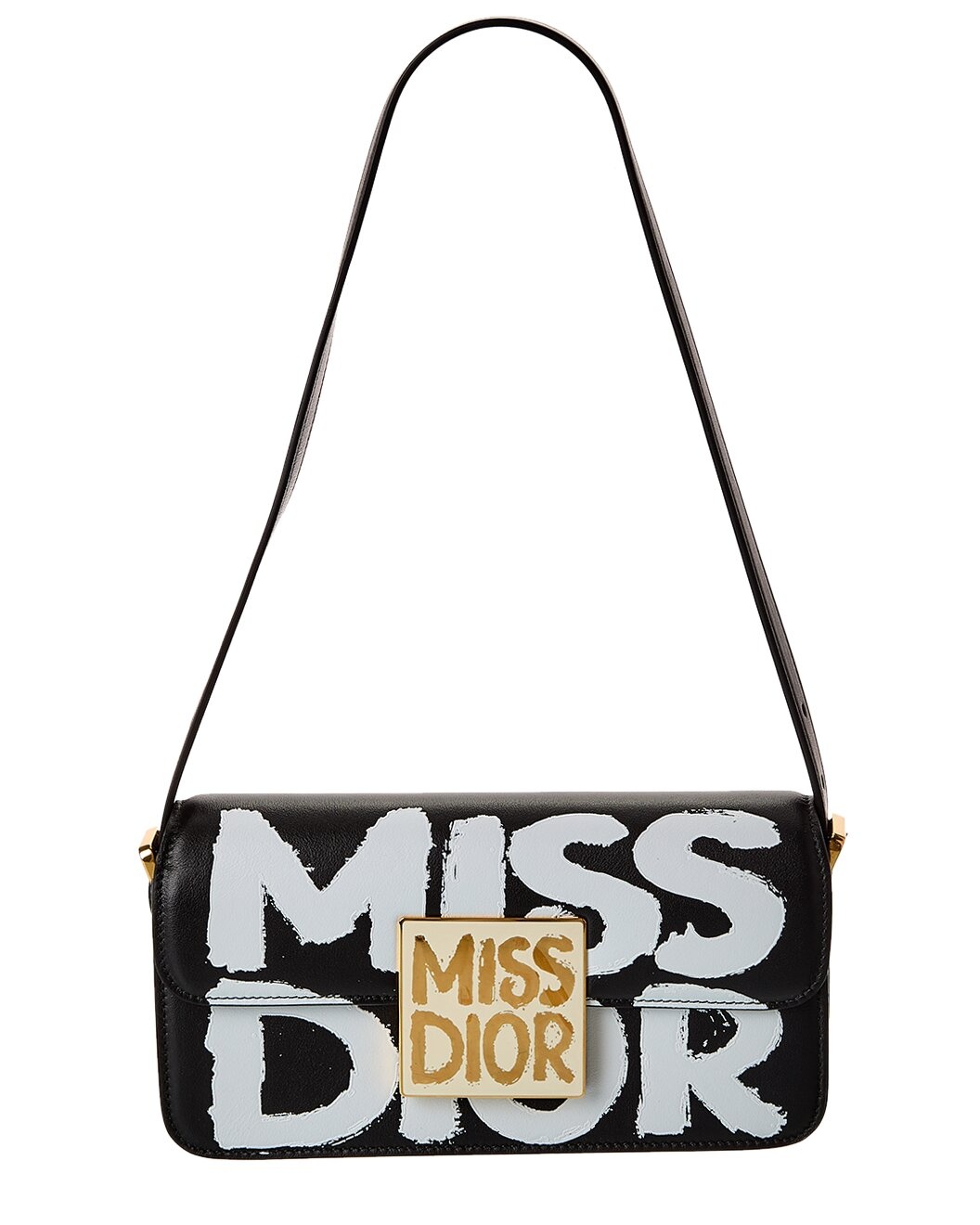 - About the brand: Elegant and timeless French luxury. - Made in Italy - Miss Dior Leather Shoulder Bag in black and white leather and gold-tone hardware - Interior design details: leather lining, wall pocket - Measures 8.75in wide x 4.5in high x 2.5in deep - Adjustable shoulder strap drops 17in - Fold-over flap with magnetic closure - Please note: All measurements were taken by hand and are approximate; slight variations may occur. - Our products are 100% genuine. In some cases we purchase merchandise from trusted independent suppliers and not directly from the brand owner. In all cases we stand by the authenticity of every product sold on our site.