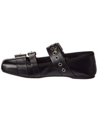 - About the brand: Elegant and timeless French luxury. - Please note: Size selections are European. For US conversions, please reference size chart. - Made in Italy - Punk Leather Ballet Flat in black leather and silver-tone hardware with foiled graphic logo and grosgrain trim - Buckle closure - Lightly padded leather insole - Rubber sole with traction - Our products are 100% genuine. In some cases we purchase merchandise from trusted independent suppliers and not directly from the brand owner. In all cases we stand by the authenticity of every product sold on our site.