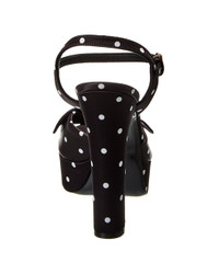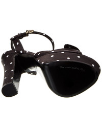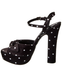 - About the brand: Inspired and versatile pieces infused with Italian culture. - Please note: Size selections are European. For US conversions, please reference size chart. - Based on feedback from Members, this brand typically runs small. We suggest sizing up a half size for most styles. - Made in Italy - Satin Platform Sandal in black polka dot satin and gold-tone hardware with logo accent and knotted bow - Adjustable ankle strap with buckle closure - Lightly padded leather insole - Smooth leather sole - 5.5in heel - 1.5in platform - Please note: All measurements are approximate and were taken from a size 37; slight variations may occur. - Our products are 100% genuine. In some cases we purchase merchandise from trusted independent suppliers and not directly from the brand owner. In all cases we stand by the authenticity of every product sold on our site.