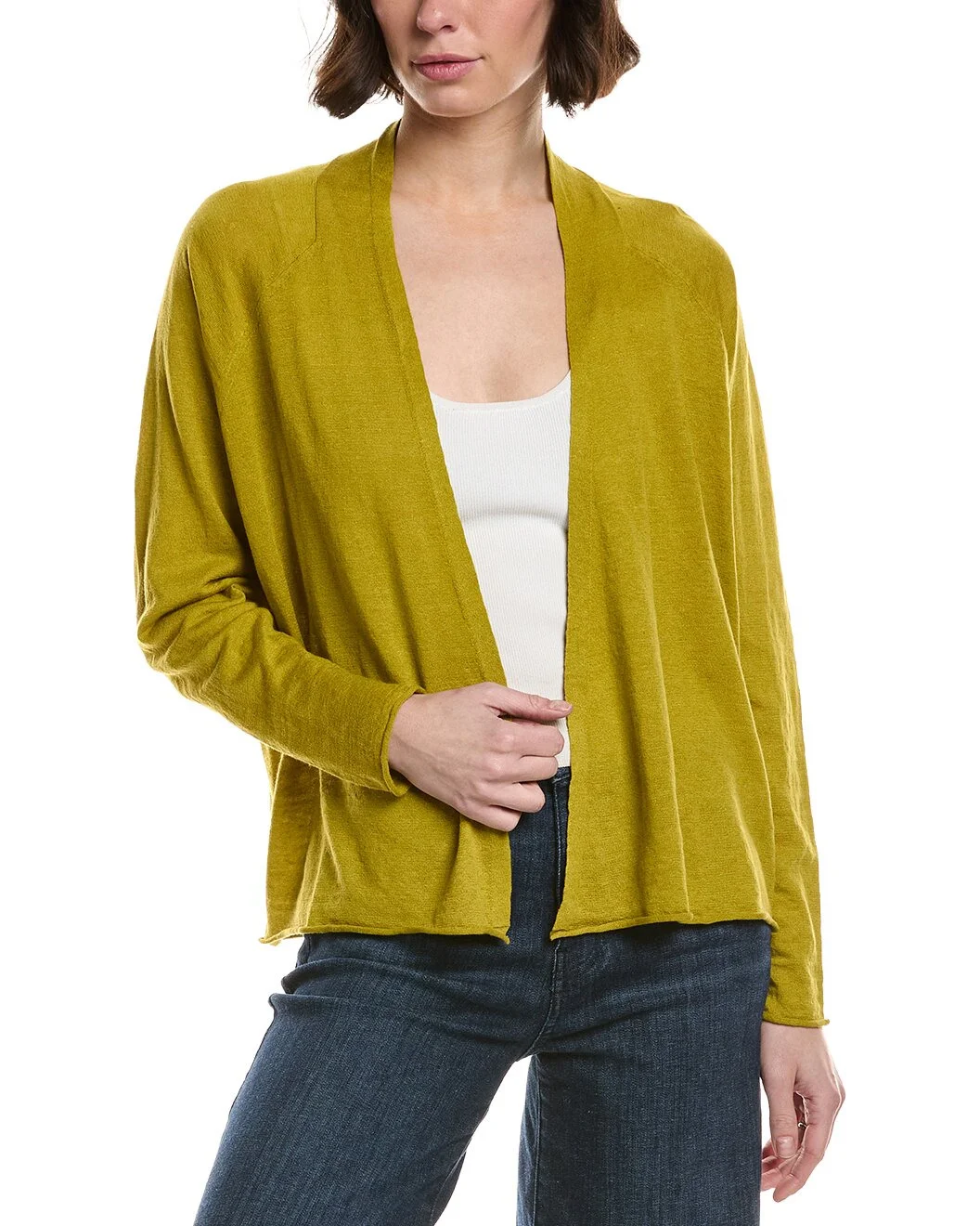 - About the brand: Versatile minimalist shapes, ethically made. - Raglan Sleeve Linen-Blend Cardigan in gold with raglan sleeve - Approximately 23in from shoulder to hem - This item tends to run large (based on Member feedback). We recommend sizing down for your best fit. Model is 5'9 and is wearing a size S. Measurements may vary slightly by size. - Open Front - 68% organic linen, 32% orgnanic cotton - Hand wash - Imported