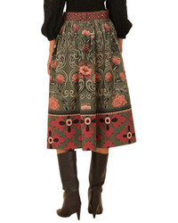 Arabesque Floral Green Buttons Midi Skirt