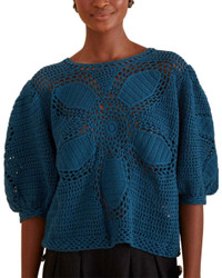 FARM Rio Teal Flower Draw Crochet Blouse