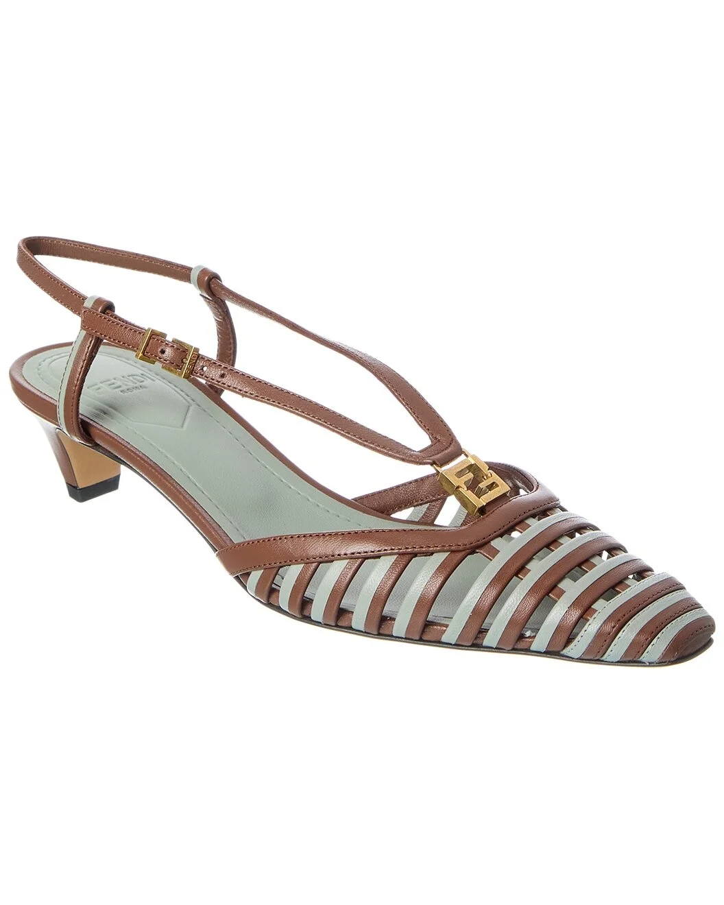 - About the brand: Innovative and elegant Italian luxury. - Please note: Size selections are European. For US conversions, please reference size chart. - Made in Italy - FFold Leather Slingback Pump in brown and matcha leather and gold-tone hardware with logo accent - Adjustable ankle strap with buckle closure - Lightly padded leather insole - Smooth leather sole - 1.5in heel - Please note: All measurements are approximate and were taken from a size 37; slight variations may occur. - Our products are 100% genuine. In some cases we purchase merchandise from trusted independent suppliers and not directly from the brand owner. In all cases we stand by the authenticity of every product sold on our site.