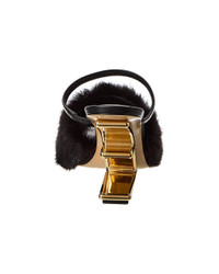 - About the brand: Innovative and elegant Italian luxury. - Please note: Size selections are European. For US conversions, please reference size chart. - Made in Italy - First Leather Sandal in black leather and mink fur and gold-tone hardware with logo heel - Lightly padded leather insole - Smooth leather sole - 3.5in heel - Please note: All measurements are approximate and were taken from a size 37; slight variations may occur. - Our products are 100% genuine. In some cases we purchase merchandise from trusted independent suppliers and not directly from the brand owner. In all cases we stand by the authenticity of every product sold on our site.