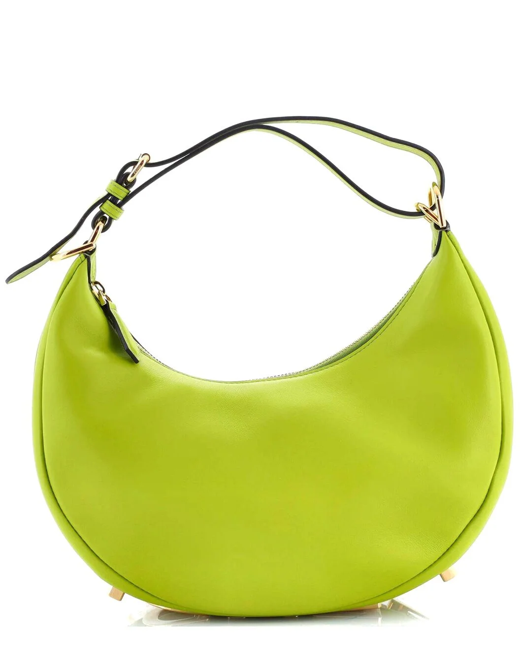 Small hobo bag made of neon yellow leather, decorated with the FENDI lettering in a vintage palladiu