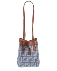 - About the brand: Innovative and elegant Italian luxury. - Made in Italy - Origami Mini FF Denim & Leather Shoulder Bag in blue FF denim-effect jacquard fabric and brown leather and gold-tone hardware with key ring charm - Interior design details: fabric lining - Measures 6in wide x 7in high x 6in deep - Shoulder straps drop 19in - Magnetic closure - Please note: All measurements were taken by hand and are approximate; slight variations may occur. - Our products are 100% genuine. In some cases we purchase merchandise from trusted independent suppliers and not directly from the brand owner. In all cases we stand by the authenticity of every product sold on our site.