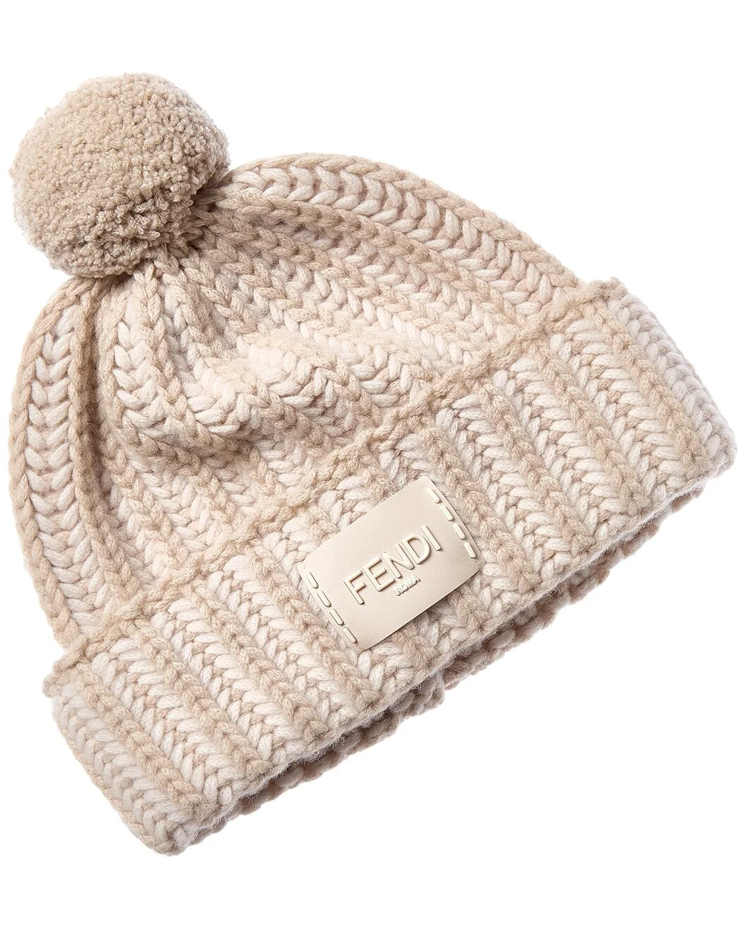 - About the brand: Innovative and elegant Italian luxury. - Color/pattern: white/beige - Design details: pom accent - Measures 10in from top of head to hem - 85% virgin wool, 15% cashmere - Dry clean only - Made in Italy - Please note: All measurements were taken by hand and are approximate; slight variations may occur. - Our products are 100% genuine. In some cases we purchase merchandise from trusted independent suppliers and not directly from the brand owner. In all cases we stand by the authenticity of every product sold on our site.
