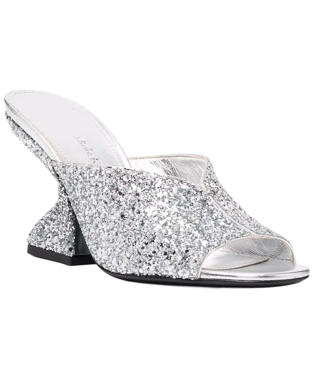 - About the brand: The Gancini, The Vara, and all the icons in-between. - Made in Italy - 80 mm Sansu Leather Slide in silver glitter/leather - Slip-on styling - Lightly padded leather insole - Leather sole - 2.5in heel - Our products are 100% genuine.  In some cases we purchase merchandise from trusted independent suppliers and not directly from the brand owner.  In all cases we stand by the authenticity of every product sold on our site.