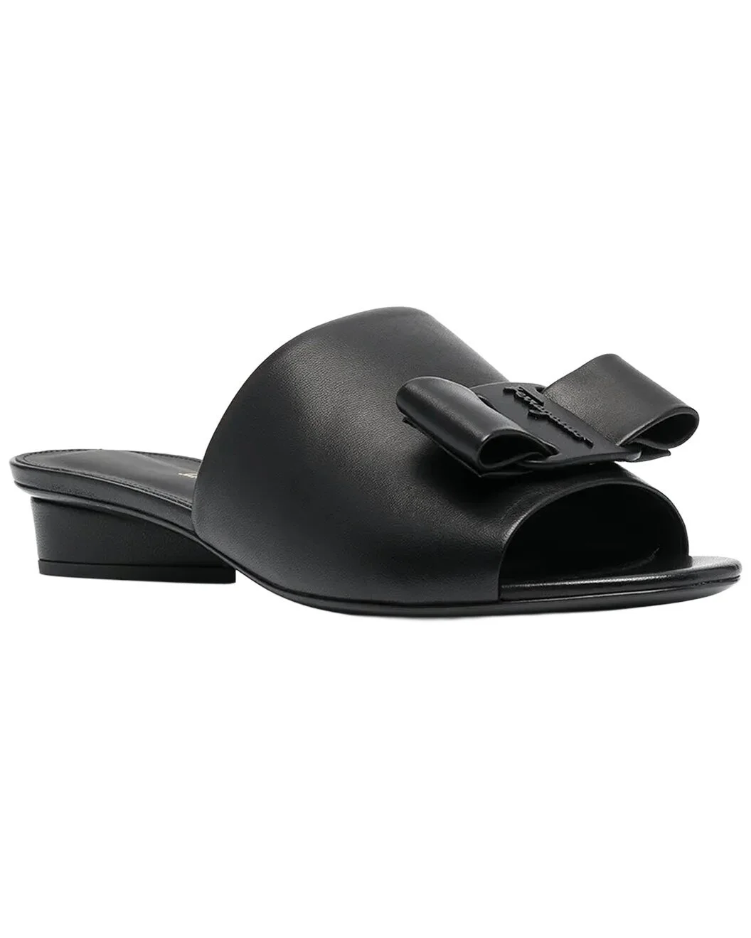 - About the brand: The Gancini, The Vara, and all the icons in-between. - Made in Italy - Bow 3mm Leather Slide in multi leather - Buckle closure - Leather sole - 3.5in heel - Our products are 100% genuine. In some cases we purchase merchandise from trusted independent suppliers and not directly from the brand owner. In all cases we stand by the authenticity of every product sold on our site.