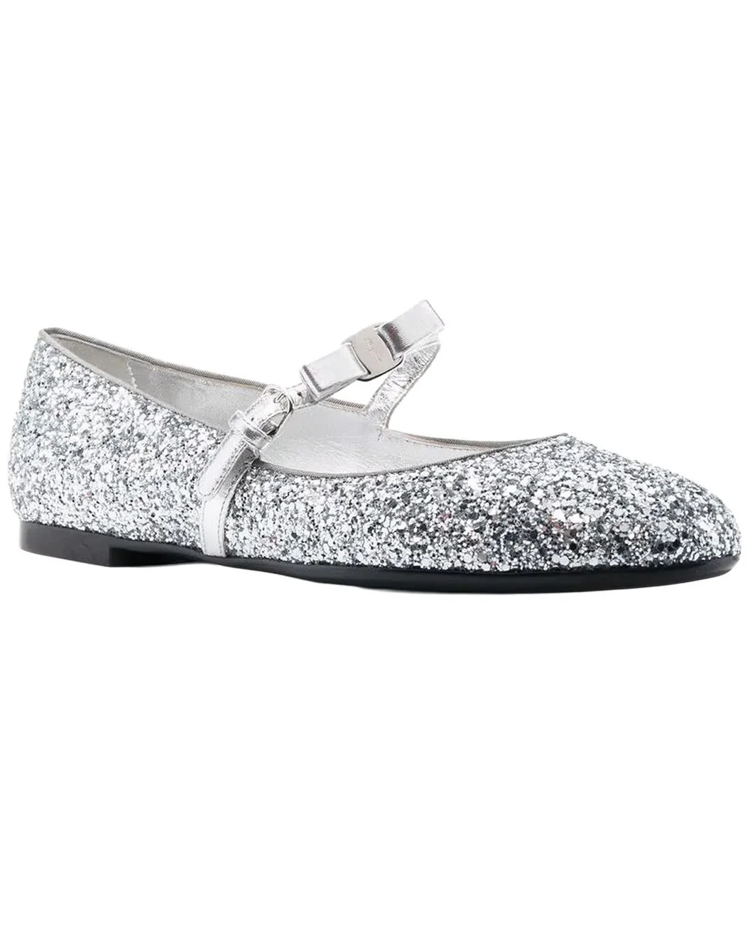 - About the brand: The Gancini, The Vara, and all the icons in-between. - Made in Italy - Bow Leather Ballet Flat in silver leather - Slip-on styling - Leather sole - 1.5in heel - Our products are 100% genuine. In some cases we purchase merchandise from trusted independent suppliers and not directly from the brand owner. In all cases we stand by the authenticity of every product sold on our site.