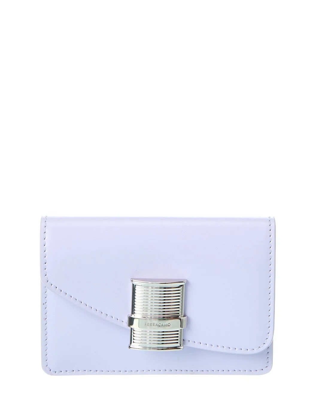 - About the brand: The Gancini, The Vara, and all the icons in-between. - Made in Italy - Fiamma Leather Card Holder in lavender leather and silver-tone hardware - Interior design details: leather lining, card slots - Measures 4.3in wide x 3in high x 0.5in deep - Fold-over flap with snap closure - Please note: All measurements were taken by hand and are approximate; slight variations may occur. - Our products are 100% genuine. In some cases we purchase merchandise from trusted independent suppliers and not directly from the brand owner. In all cases we stand by the authenticity of every product sold on our site.