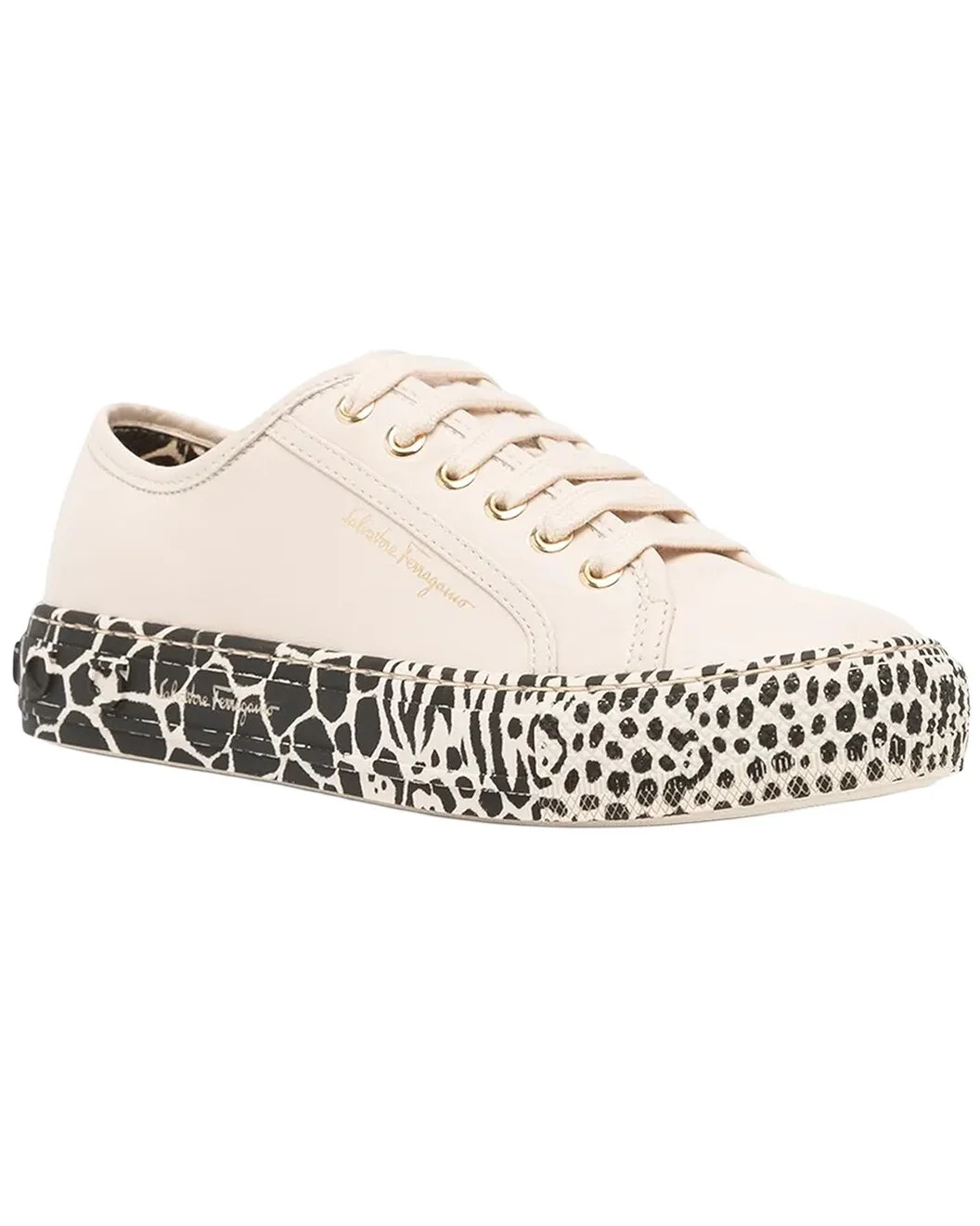 - About the brand: The Gancini, The Vara, and all the icons in-between. - Made in Italy - Gancini Leather Sneaker in neutral calfskin leather - Lace-up closure - Rubber sole - 1.5in platform - Our products are 100% genuine. In some cases we purchase merchandise from trusted independent suppliers and not directly from the brand owner. In all cases we stand by the authenticity of every product sold on our site.