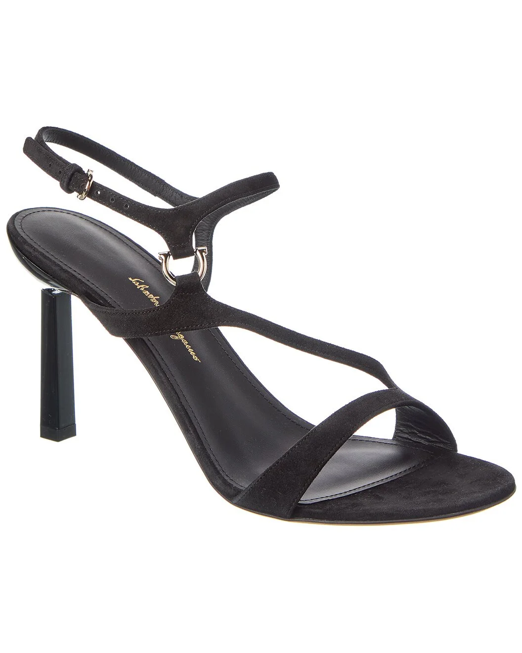 - About the brand: The Gancini, The Vara, and all the icons in-between. - Please note: B indicates narrow sizing; C indicates standard sizing; D indicates wide sizing; M indicates medium sizing. - Made in Italy - Jille Suede Sandal in black suede and gold-tone hardware with Gancini details - Adjustable ankle strap with buckle closure - Lightly padded leather insole - Smooth leather sole - 4in heel - Please note: All measurements are approximate and were taken from a size 9; slight variations may occur. - Our products are 100% genuine. In some cases we purchase merchandise from trusted independent suppliers and not directly from the brand owner. In all cases we stand by the authenticity of every product sold on our site.