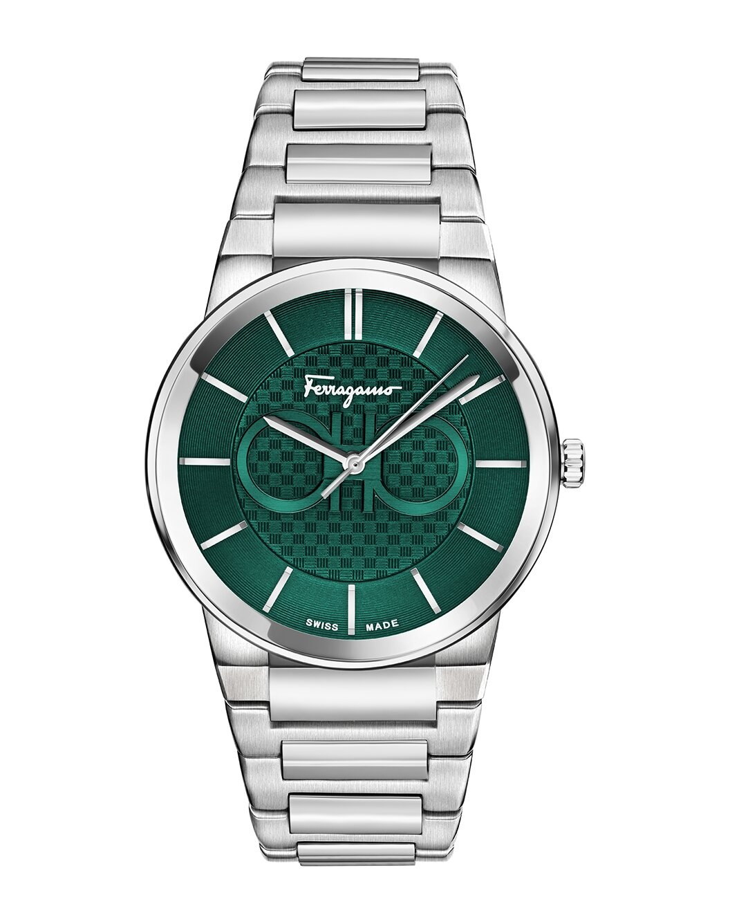 - About the brand: The Gancini, The Vara, and all the icons in-between. - 3 Hand Quartz movement - Silver Recycled Stainless Steel bracelet - Deployant clasp - Stainless Steel bezel - Stainless Steel case - Sapphire crystal - Push-pull crown - Green dial - Date display - Case: 41mm x 8.1mm - Bracelet/strap: 16.5mm wide x 175mm long - Water-resistant up to 50 meters - Manufacturer's limited warranty - Swiss Made - The Watch Size Guide - Our products are 100% genuine. In some cases we purchase merchandise from trusted independent suppliers and not directly from the brand owner. In all cases we stand by the authenticity of every product sold on our site.