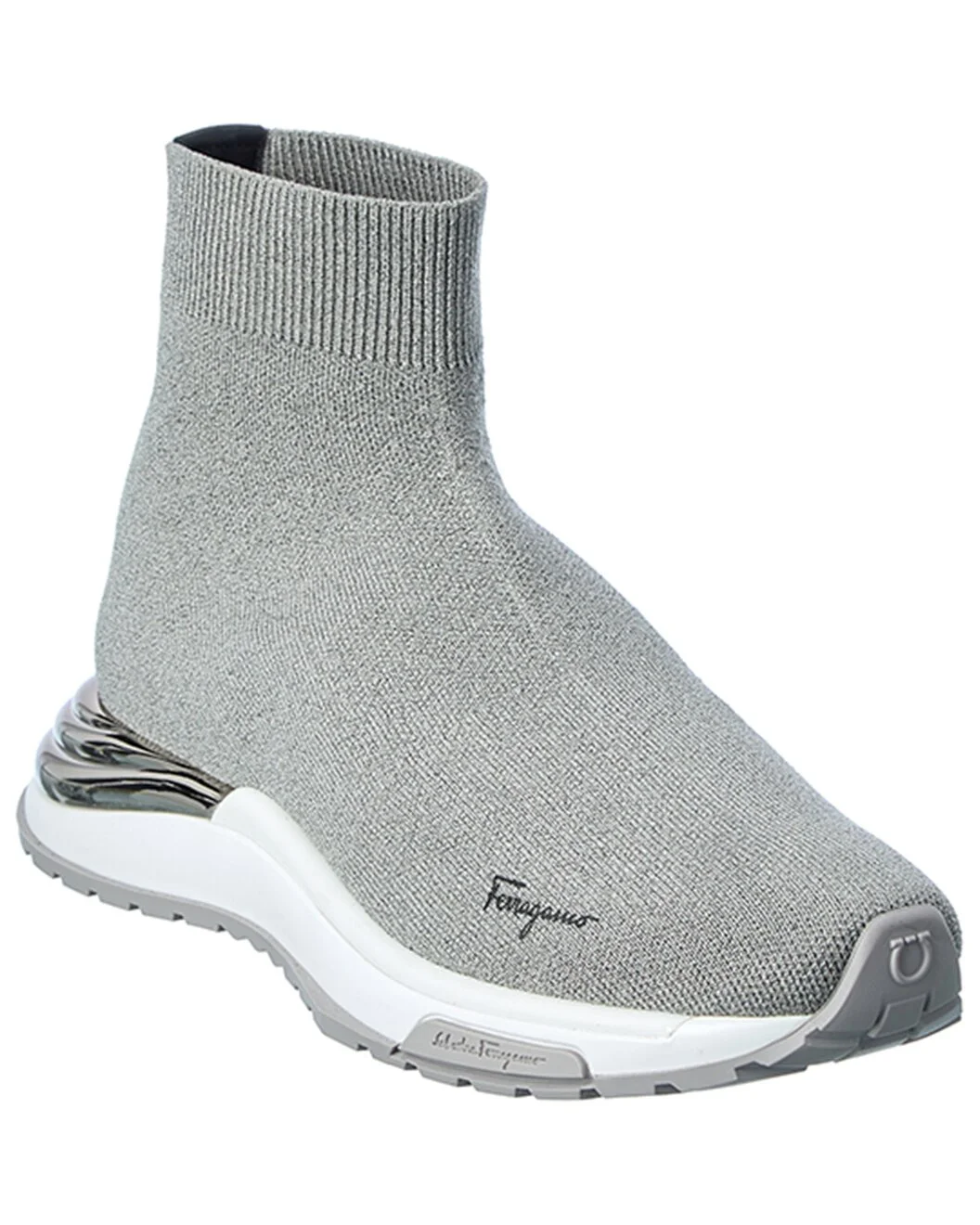 - About the brand: The Gancini, The Vara, and all the icons in-between. - Please note: B indicates narrow sizing; C indicates standard sizing; D indicates wide sizing; M indicates medium sizing. - Made in Italy - Ninette Knit Sock Sneaker in grey knit textile with shiny detail at sole - Lightly padded leather insole - Rubber sole with traction - Our products are 100% genuine. In some cases we purchase merchandise from trusted independent suppliers and not directly from the brand owner. In all cases we stand by the authenticity of every product sold on our site.