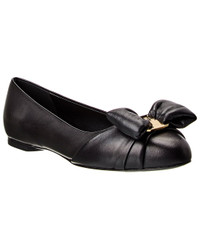 - About the brand: The Gancini, The Vara, and all the icons in-between. - Please note: B indicates narrow sizing; C indicates standard sizing; D indicates wide sizing; M indicates medium sizing. - Made in Italy - Varina Leather Flat in black leather and gold-tone hardware with Vara bow accent - Lightly padded leather insole - Smooth leather sole - Our products are 100% genuine. In some cases we purchase merchandise from trusted independent suppliers and not directly from the brand owner. In all cases we stand by the authenticity of every product sold on our site.