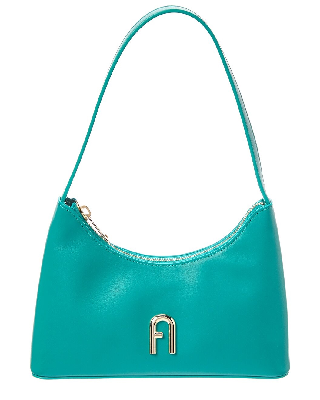 - About the brand: Classic elegance crafted with quality. - Color/material: smeraldo leather - Design details: light gold-tone hardware, Furla logo - Interior design details: flat open pocket/ zipped pocket - Measures 9.4488in wide x 6.2992in high x 2.3622in deep - Top handle drops 9.0551in - Zipper closure - Imported - Please note: All measurements were taken by hand and are approximate; slight variations may occur.
