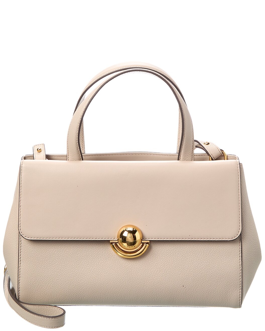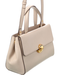 - About the brand: Classic elegance crafted with quality. - Sfera Medium Leather Tote in vaniglia leather and gold-tone hardware with fold-over flap pocket - Interior design details: fabric lining, zippered pocket - Measures 11in wide x 8in high x 5in deep - Top handles drop 5in - Adjustable and removable shoulder strap drops 27in - Open top - Imported - Please note: All measurements were taken by hand and are approximate; slight variations may occur.