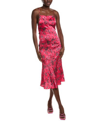 PINK FLORAL PRINTED SATIN MIDI DRESS