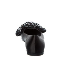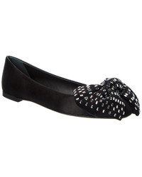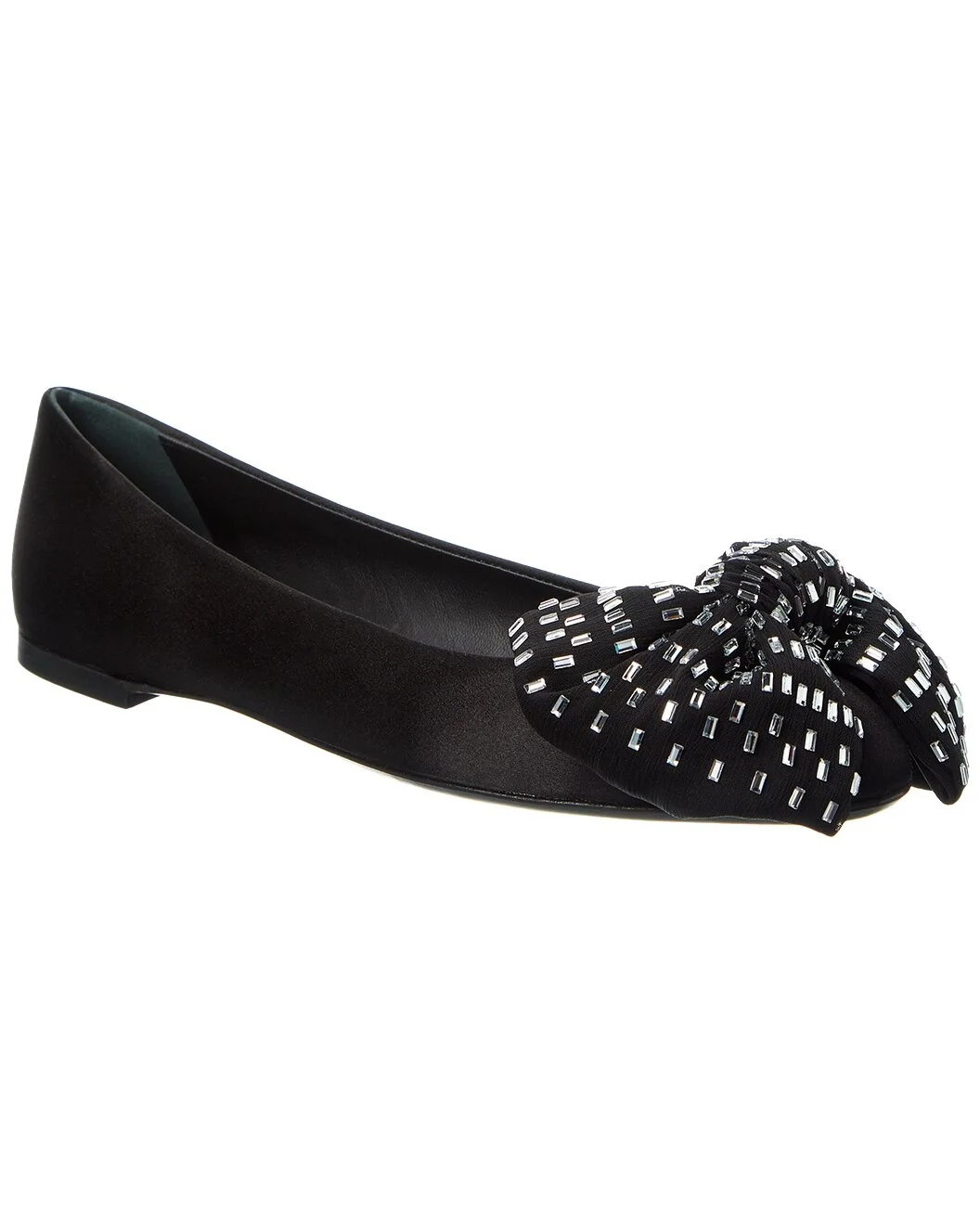 - About the brand: Glamourous & creative footwear and accessories with edge. - Please note: Size selections are European. For US conversions, please reference size chart. - Based on feedback from Members, this brand typically runs small. We suggest sizing up a half size for most styles. - Made in Italy - Flavia Satin Flat in black satin with rhinestone-embellished bow - Lightly padded leather insole - Smooth leather sole