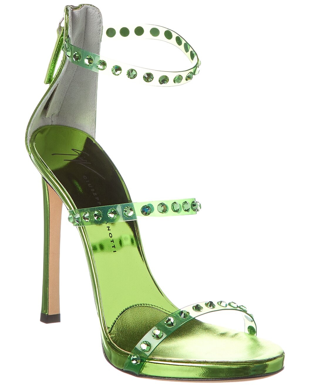 - About the brand: Glamourous & creative footwear and accessories with edge. - Please note: Size selections are European. For US conversions, please reference size chart. - Based on feedback from Members, this brand typically runs small. We suggest sizing up a half size for most styles. - Made in Italy - South 115 Vinyl Sandal in green transparent vinyl and silver-tone hardware with crystal embellishments - Center back zip-up closure - Lightly padded leather insole - Smooth leather sole - 5in heel - Please note: All measurements are approximate and were taken from a size 37; slight variations may occur. - WARNING: - CA Residents - Prop 65 - Our products are 100% genuine. In some cases we purchase merchandise from trusted independent suppliers and not directly from the brand owner. In all cases we stand by the authenticity of every product sold on our site.