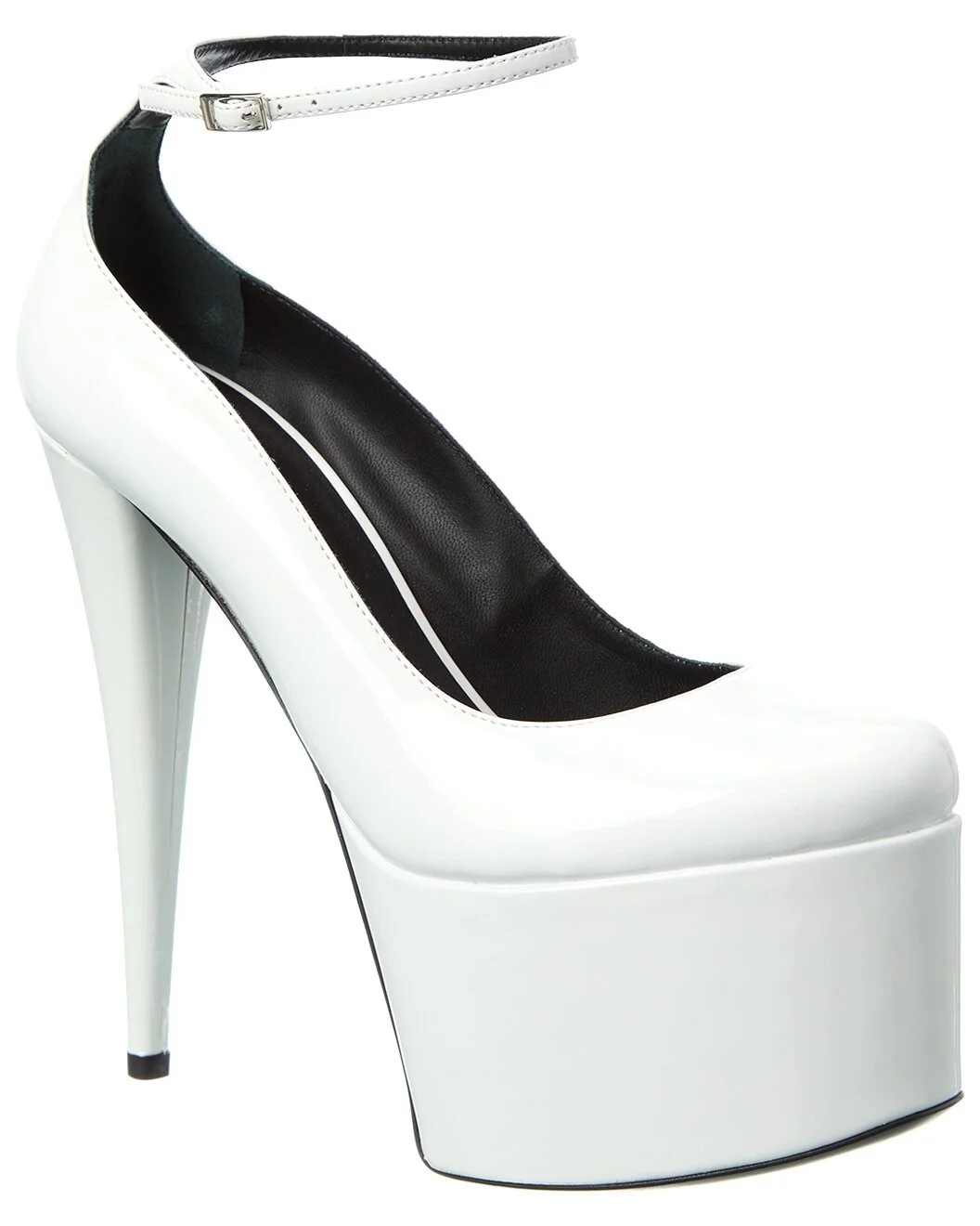 - About the brand: Glamourous & creative footwear and accessories with edge. - Please note: Size selections are European. For US conversions, please reference size chart. - Based on feedback from Members, this brand typically runs small. We suggest sizing up a half size for most styles. - Made in Italy - Yana 90 Platform Pump in white patent synthetic and silver-tone hardware - Adjustable ankle strap with buckle closure - Lightly padded leather insole - Smooth leather sole - 6in heel - 2.5in platform - Please note: All measurements are approximate and were taken from a size 37; slight variations may occur.