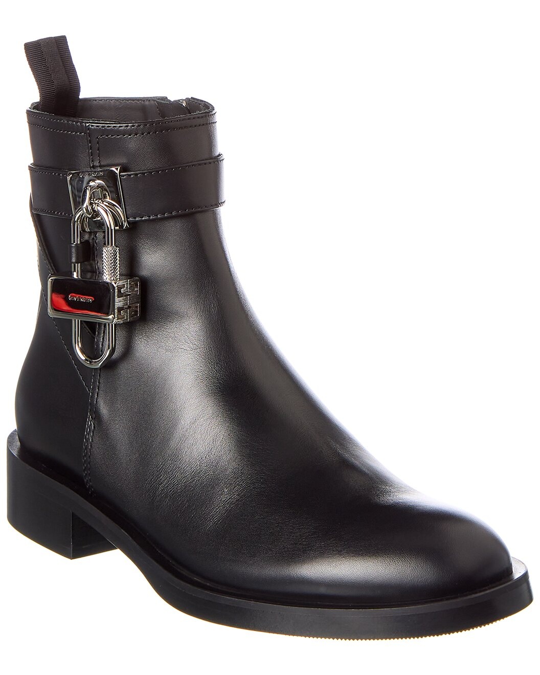 - About the brand: Elegance. Sophistication. Finesse. - Please note: Size selections are European. For US conversions, please reference size chart. - Made in Italy - Lock Leather Bootie in black leather and silver-tone hardware with padlock detail - Inner side zip-up closure - Lightly padded leather insole - Smooth leather sole with light traction - 1.5in heel - 6in shaft - 10in boot circumference - Please note: All measurements are approximate and were taken from a size 37; slight variations may occur. - Our products are 100% genuine. In some cases we purchase merchandise from trusted independent suppliers and not directly from the brand owner. In all cases we stand by the authenticity of every product sold on our site. - The Boot Size Guide