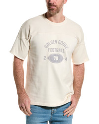 - About the brand: The Golden Goose Manifesto is: lived-in, perfect imperfection. Iconic distressed sneakers and unique street wear rooted in tradition with worldwide inspirations - from Venice to LA. - Logo Printed T-Shirt in cream with crewneck, graphic front and distressed detailing - Approximately 31in from shoulder to hem - Model is 6'2 and is wearing a size large. Measurements may vary slightly by size. - 100% cotton - Machine wash - Made in Italy - Our products are 100% genuine. In some cases we purchase merchandise from trusted independent suppliers and not directly from the brand owner. In all cases we stand by the authenticity of every product sold on our site.