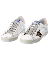 - About the brand: The Golden Goose Manifesto is: lived-in, perfect imperfection. Iconic distressed sneakers and unique street wear rooted in tradition with worldwide inspirations - from Venice to LA. - Please note: Size selections are European. For US conversions, please reference size chart. - Made in Italy - Superstar Leather Sneaker in white leather with bead embellishments - Mixed-design pair features one leopard star shoe and one silver glitter shoe - Lace-up closure - Lightly padded leather insole - Rubber sole with traction - Our products are 100% genuine. In some cases we purchase merchandise from trusted independent suppliers and not directly from the brand owner. In all cases we stand by the authenticity of every product sold on our site.
