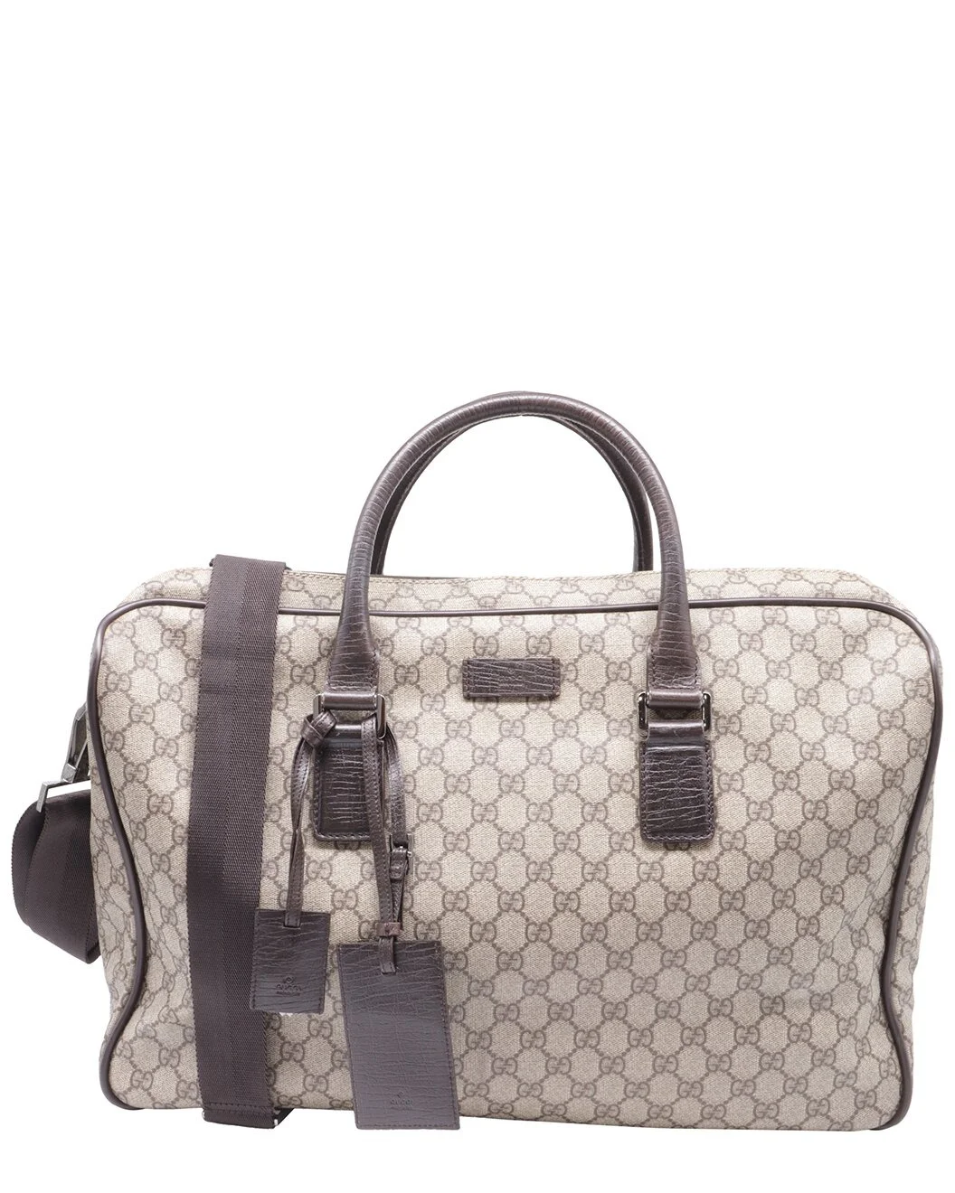 - About the brand: Eclectic and coveted. Italian luxury redefined. - This is an authentic, pre-loved piece. This item is in very good condition and shows light signs of wear. This item shows lightly used but very well maintained, may show minor signs of wear, scratches , worn corners, minor interior wear. - For more information on condition, please see our condition guide at the bottom - Weekender Handbag in Beige GG Supreme Canvas - Measurements: 18.5in long x 7.48in wide x 13.39in high - Please note: All measurements were taken by hand and are approximate; slight variations may occur. - The Pre-Loved Condition Guide - Our products are 100% genuine. In some cases we purchase merchandise from trusted independent suppliers and not directly from the brand owner. In all cases we stand by the authenticity of every product sold on our site.