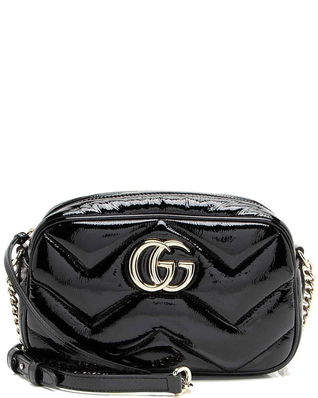 - About the brand: Eclectic and coveted. Italian luxury redefined. - This is an authentic, pre-loved piece. This item is in very good condition and shows light signs of wear. This item shows lightly used but very well maintained, may show minor signs of wear, scratches , worn corners, minor interior wear. - For more information on condition, please see our condition guide at the bottom - Padded GG Marmont Small Camera Bag in Black Matelasse Patent Leather - Measurements: 8.97in long x 5.47in high - Please note: All measurements were taken by hand and are approximate; slight variations may occur. - The Pre-Loved Condition Guide - Our products are 100% genuine. In some cases we purchase merchandise from trusted independent suppliers and not directly from the brand owner. In all cases we stand by the authenticity of every product sold on our site.