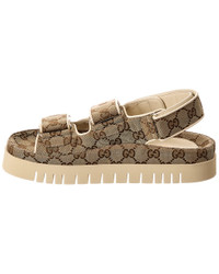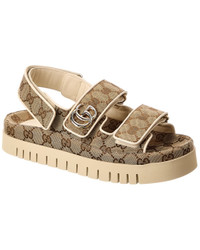 - About the brand: Eclectic and coveted. Italian luxury redefined. - Please note: Size selections are European. For US conversions, please reference size chart. - Based on feedback from Members, this item typically runs large. We suggest sizing down. - Made in Italy - Double G GG Canvas & Leather Sandal in brown GG canvas and white leather and light fine gold hardware with interlocking G logo accent - Adjustable straps with Velcro closures - Smooth leather insole - Rubber sole with traction - Our products are 100% genuine. In some cases we purchase merchandise from trusted independent suppliers and not directly from the brand owner. In all cases we stand by the authenticity of every product sold on our site.