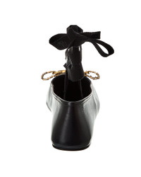 - About the brand: Eclectic and coveted. Italian luxury redefined. - Please note: Size selections are European. For US conversions, please reference size chart. - Made in Italy - Double G Leather Ballet Flat in black leather and light fine gold hardware with python bow and interlocking G logo accent - Self-tie ankle wrap closure - Lightly padded leather insole - Smooth leather sole - Our products are 100% genuine. In some cases we purchase merchandise from trusted independent suppliers and not directly from the brand owner. In all cases we stand by the authenticity of every product sold on our site.