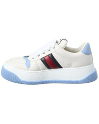 - About the brand: Eclectic and coveted. Italian luxury redefined. - Please note: Size selections are European. For US conversions, please reference size chart. - Based on feedback from Members, this item typically runs large. We suggest sizing down. - Made in Italy - Double Screener Leather Platform Sneaker in white and blue leather and dark silver hardware with logo tongue, interlocking G logo accent and red and blue signature webbing print - Lace-up closure - Lightly padded leather insole - Rubber sole with traction - 2in platform - Please note: All measurements are approximate and were taken from a size 37; slight variations may occur. - Our products are 100% genuine. In some cases we purchase merchandise from trusted independent suppliers and not directly from the brand owner. In all cases we stand by the authenticity of every product sold on our site.