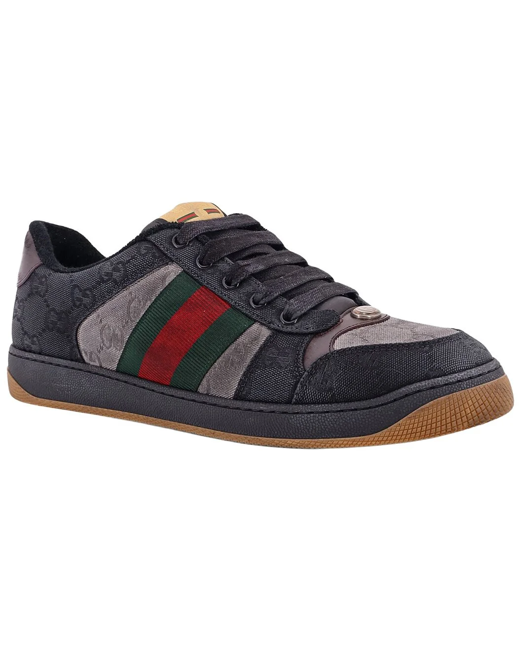 - About the brand: Eclectic and coveted. Italian luxury redefined. - Please note: Size selections are European. For US conversions, please reference size chart. - Made in Italy - GG Bicolor Canvas & Leather Sneaker in black fabric and leather with bi-color black delave GG fabric, featuring green and red web on the tongue, leather lining, enamel oval detail with metal double g, vintage Gucci logo label - Lace-up closure - Rubber sole - Our products are 100% genuine. In some cases we purchase merchandise from trusted independent suppliers and not directly from the brand owner. In all cases we stand by the authenticity of every product sold on our site.
